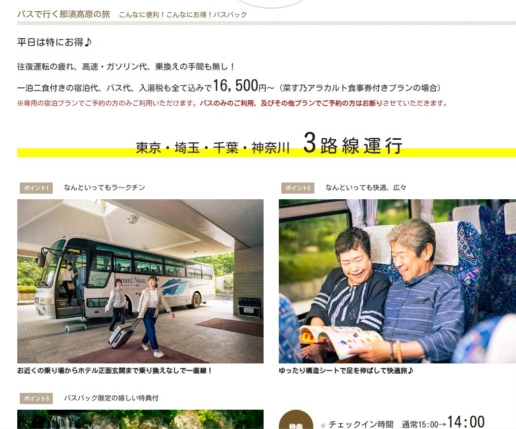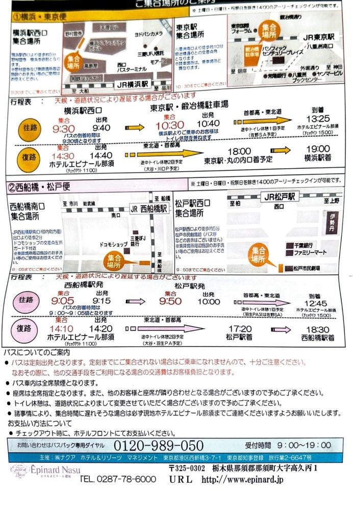 交通費 ホテルプラン込 ホテル直行送迎バス 東京駅 ⇔ エピナール那須