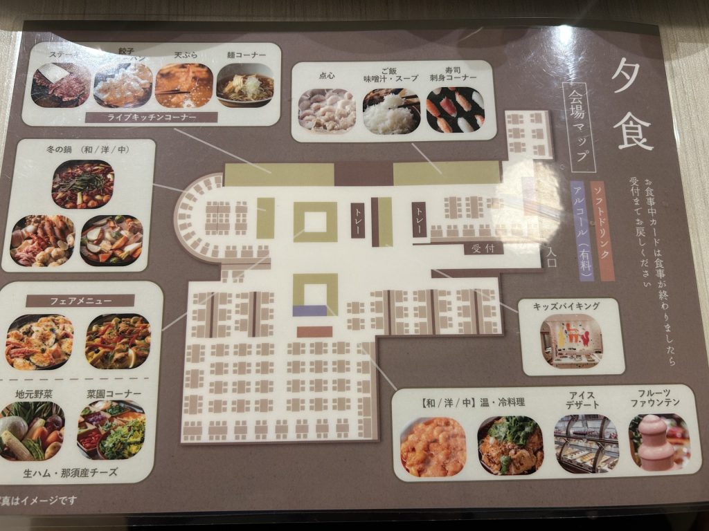 ⇩ 朝食と夕食の配置、バイキング会場こんな感じ ⇩